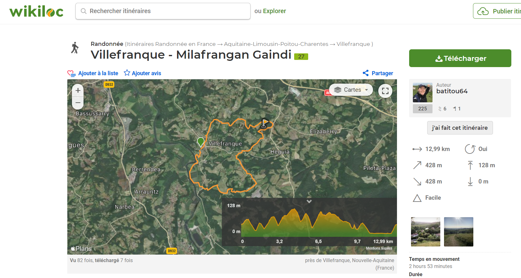 Ici à gauche un lien vers le site WIKILOC qui vous propose de découvrir le chemin de randonnée.